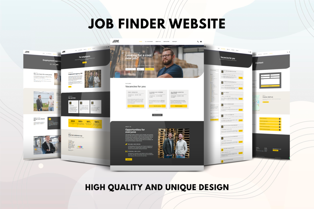 A modern, user-friendly website designed for Uitzendbureau JIM, a professional staffing agency specializing in connecting talent within logistics, production, food, and agriculture sectors.